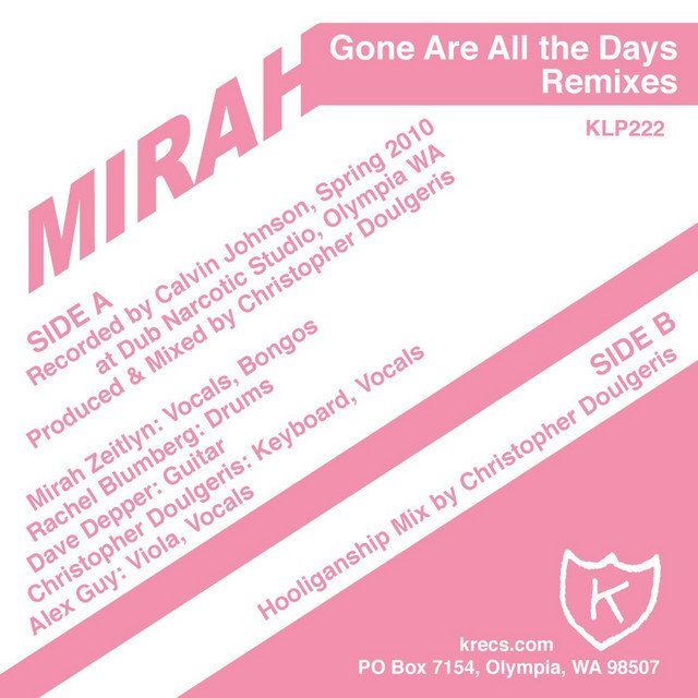 When it first appeared on (a)spera in 2009, the first solo album from Mirah since 2004, “Gone Are All the Days” was a song of sorrow with a little swing and a bit of hope. Live performances of the track took the swing and added a disco beat; an energetic pulse that alleviates sadness with glittery energy and an empowered delivery. When unwrapped this 12″ single comes in four parts: a studio recording (“Disco Beat”) including a newly constructed musical arrangement featuring a punchy bassline, a sly guitar, bongos, viola and a rerecorded vocal performance by Mirah, an isolated instrumental track, an additional dance remix by Christopher Doulgeris of Hooliganship, and an a capella vocal track. These “Days” are brighter, and the future is happening already. Be a part of it.